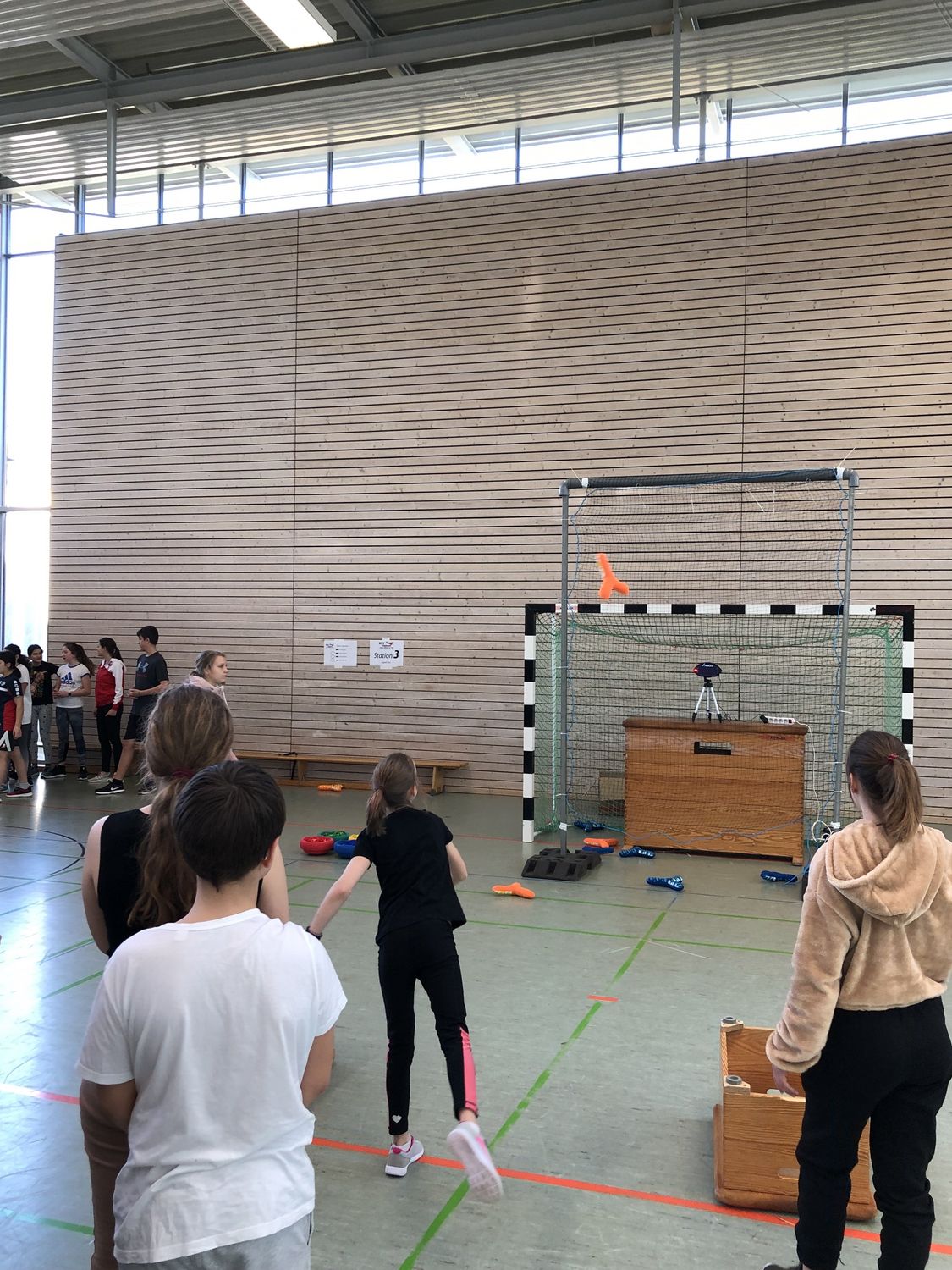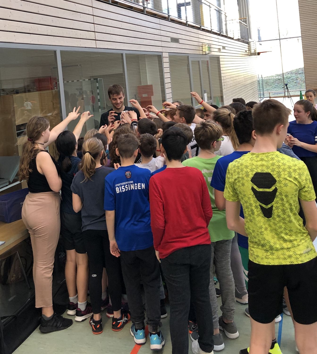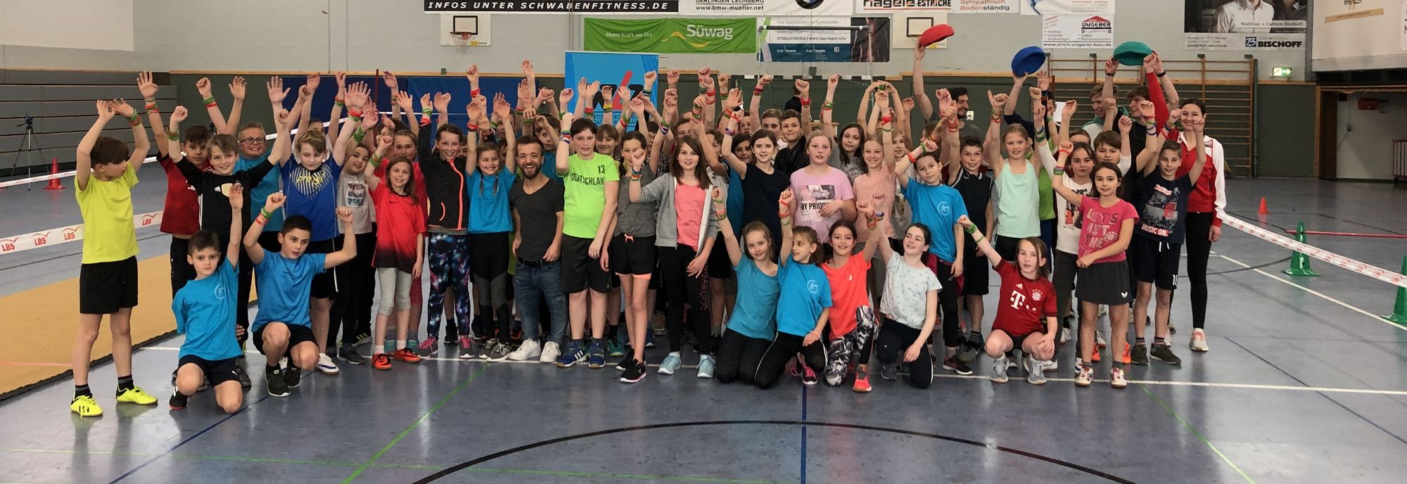 Bei den anderen Stationen fand in gewohnter Manier die Jagd nach dem roten Silikonarmband statt. Die Anfeuerungsrufe der Mitschüler übertönten so manche Ansage zum Stationswechsel - aber vielleicht wollte diese auch nicht immer gehört werden. Im Anschluss an den Durchgang der fünften Klasse durften sich die Sechstklässler den Herausforderungen der sechs YOUletics-Stationen stellen. Und auch hier ging es nicht weniger zur Sache. Die Schülerinnen und Schüler gaben alles, um ihre beste Leistung zu zeigen. Mehr als die 150 Fünft- und Sechstklässler geriet am Ende der Veranstaltung aber wahrscheinlich Felix Franz ins Schwitzen. Er war noch weit bis in die große Pause hinein mit dem Verteilen von Autogrammen beschäftigt.