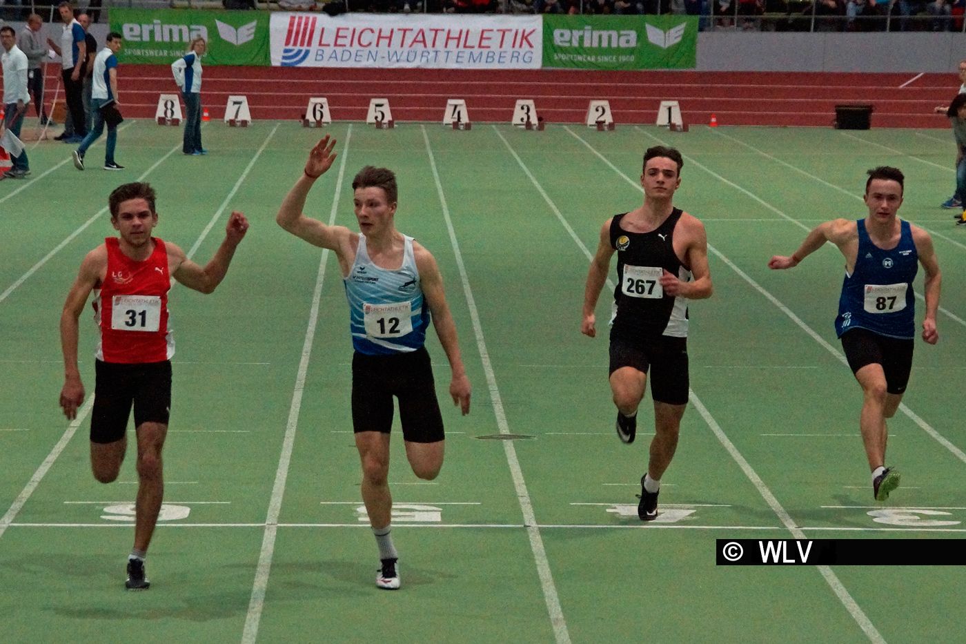 Schnellster Hürdensprinter im Glaspalast war Mehrkämpfer David Frank von der Spvgg Mössingen. Er legte über die 60 Meter Hürdendistanz 8,14 Sekunden vor und verwies damit Bruno Betz vom SSV Ulm 1846 (8,20 sec) und Tom Anderer vom TSV 05 Reichenbach (8,23 sec) auf die weiteren Medaillenplätze. Schnellste Hürdensprinterin der weiblichen Jugend U18 war Sandrina Sprengel von der LG Steinlach-Zollern in 8,75 Sekunden. Silber ging hier an Lorina Hertlein von der MTG Mannheim (8,85 sec), Bronze an Marie Jung vom SSV Ulm 1846 (8,87 sec).