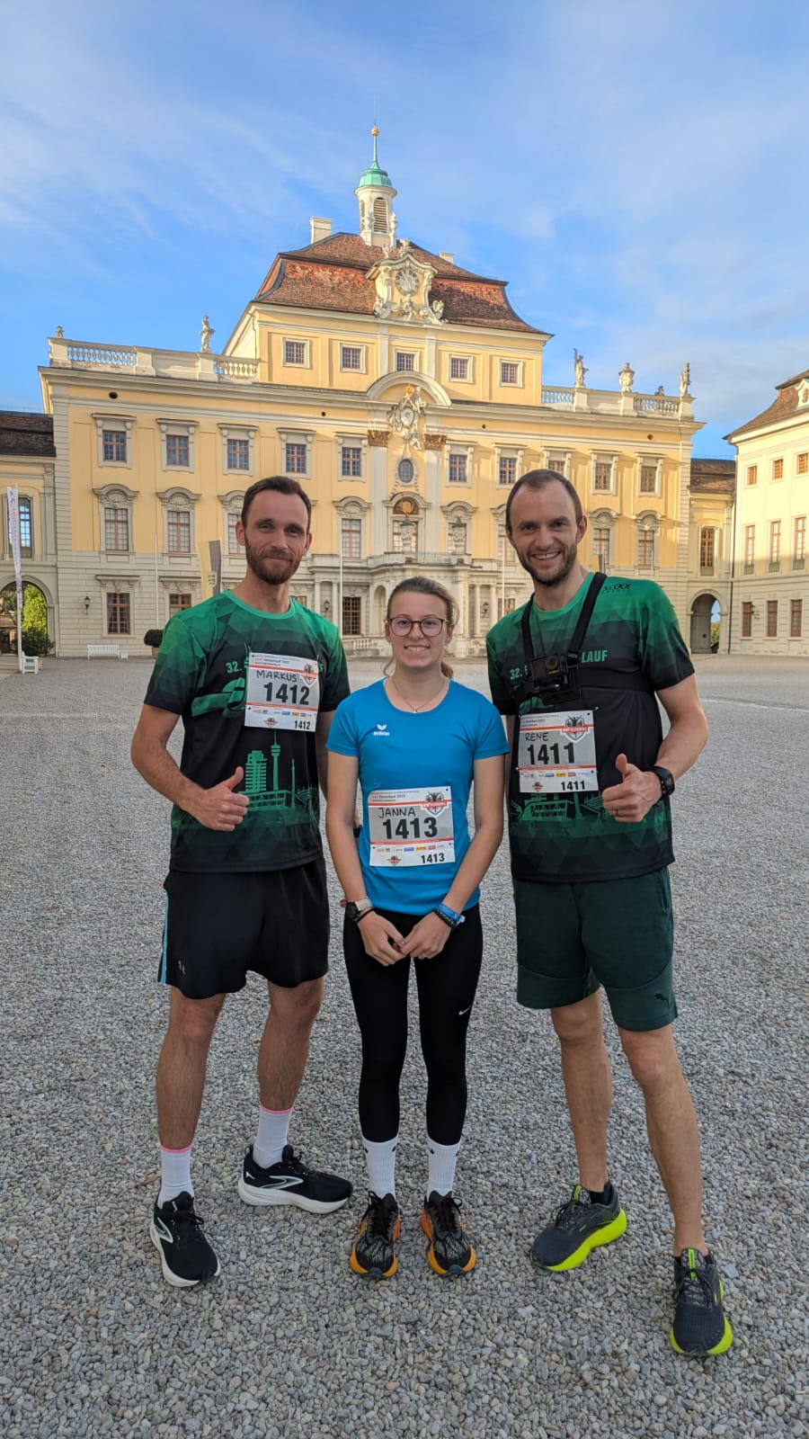 Bereits vor dem Lauf war die Stimmung im Innenhof des Residenzschlosses Ludwigsburg freudig und die Teilnehmer:innen gut gelaunt. Die Sonne schien und es war ein warmer Spätsommertag, perfekte Bedingungen für den Lauf mit über 1200 Läuferinnen und Läufern. Um das Verletzungsrisiko zu verringern und die Motivation zum Start zu steigern, gab es ein gemeinsames Aufwärmen mit der AOK Baden-Württemberg. Zur Musik wärmten sich viele Läufer:innen begeistert und dynamisch auf bis die letzten Sekunden vom Moderator runter gezählt wurden und der Startschuss letztendlich pünktlich um 18 Uhr fiel.